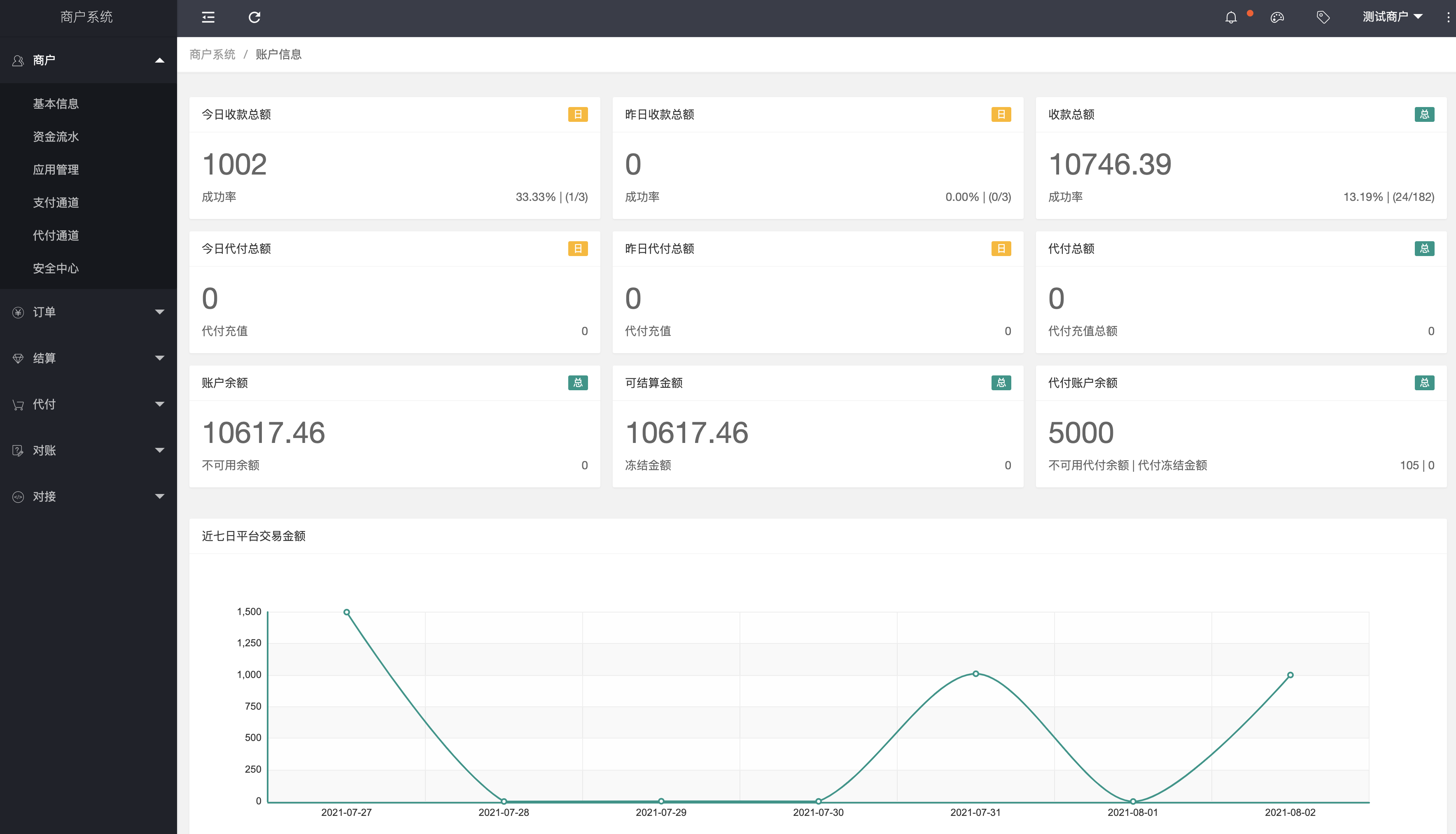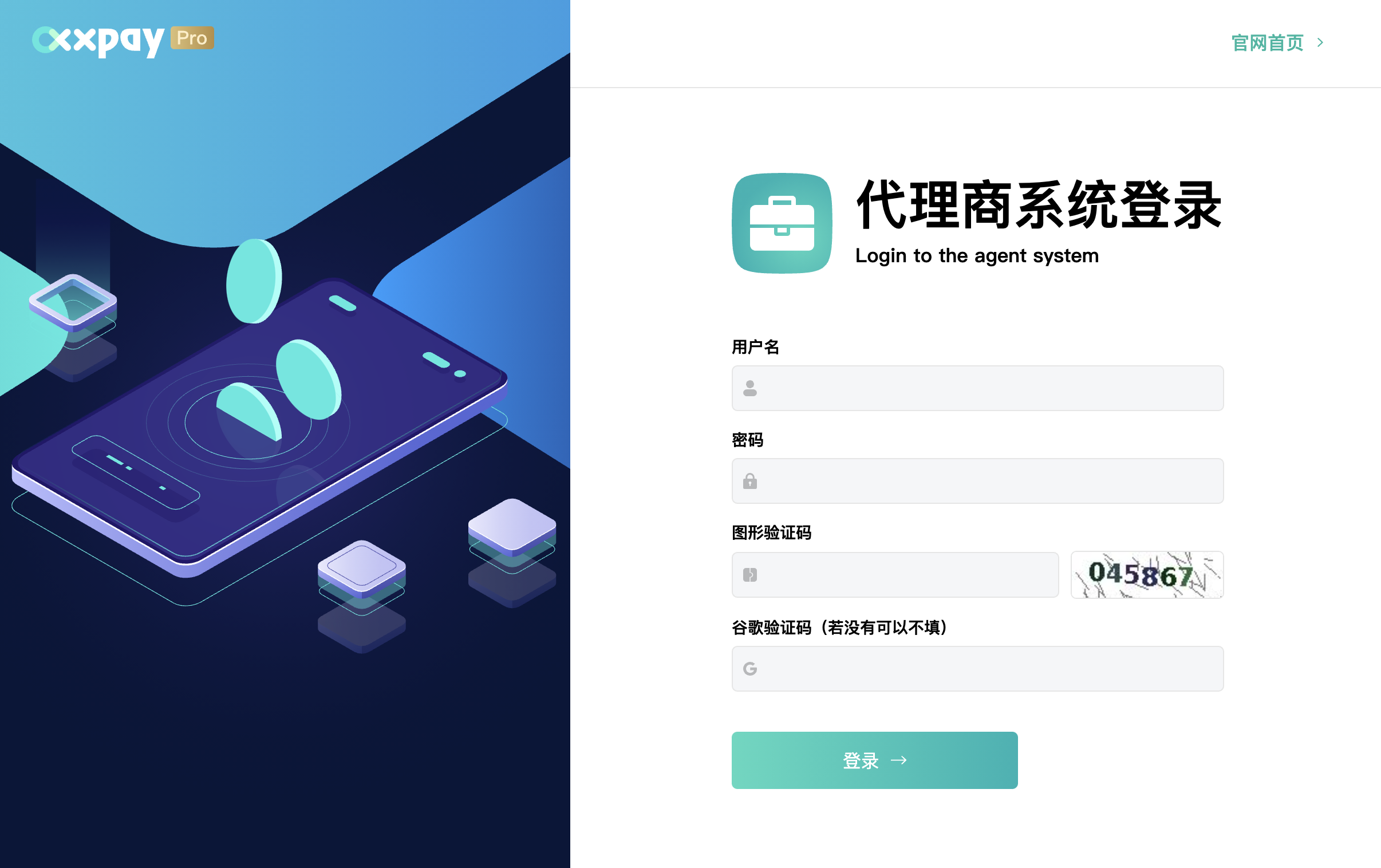 商户系统首页可通过运营平台配置,默认首页,如下: