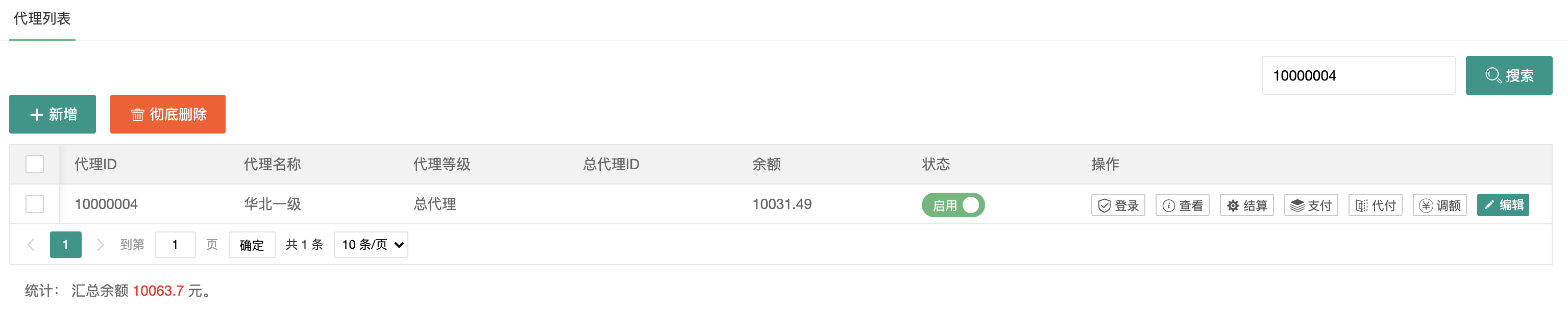 在代理列表的操作栏,点击支付可以为代理商设置支付费率。